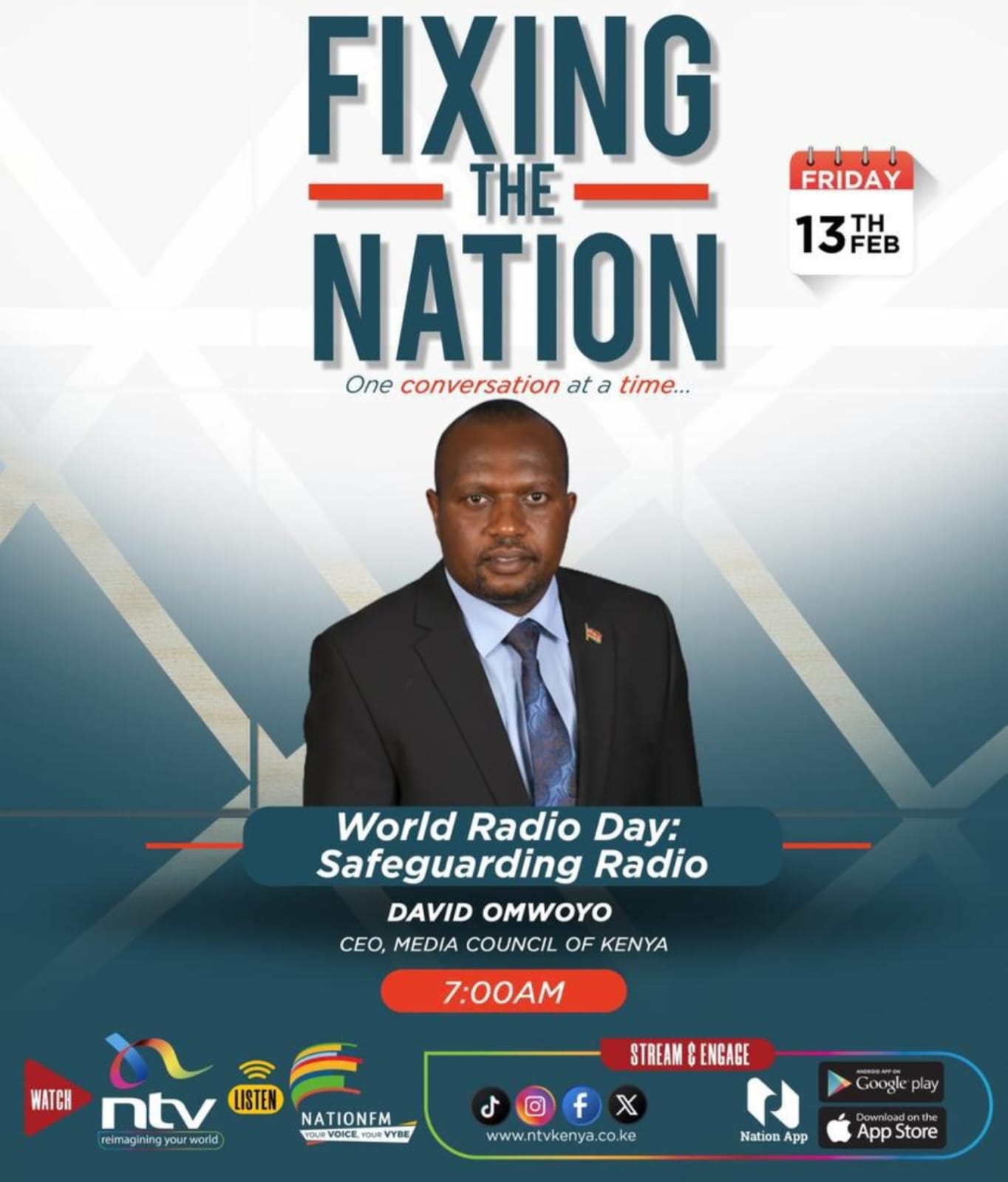 Complementing the official program, Omwoyo will also appear on NTV and Nation FM under the banner “Fixing the Nation: One Conversation at a Time” to discuss the theme “Safeguarding Radio.”