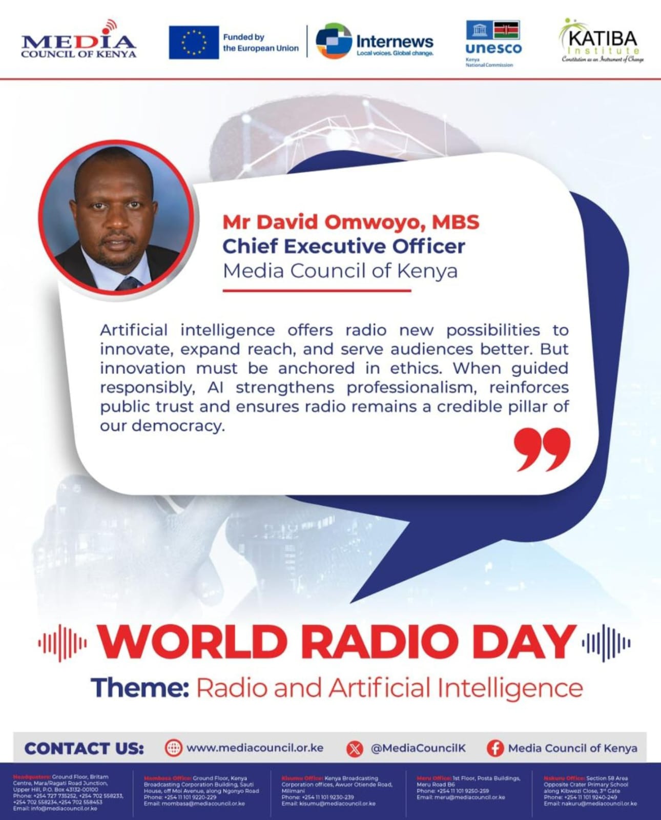 Ahead of the celebrations, MCK CEO David Omwoyo emphasized that while AI offers radio new possibilities to innovate and expand reach, its adoption must be anchored in ethics.