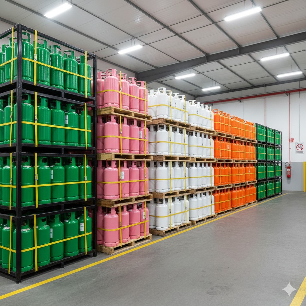 - Safe Stacking: To prevent accidental falls and valve damage, stacking is limited to four cylinders high for 6kg units and two cylinders high for 13kg units.