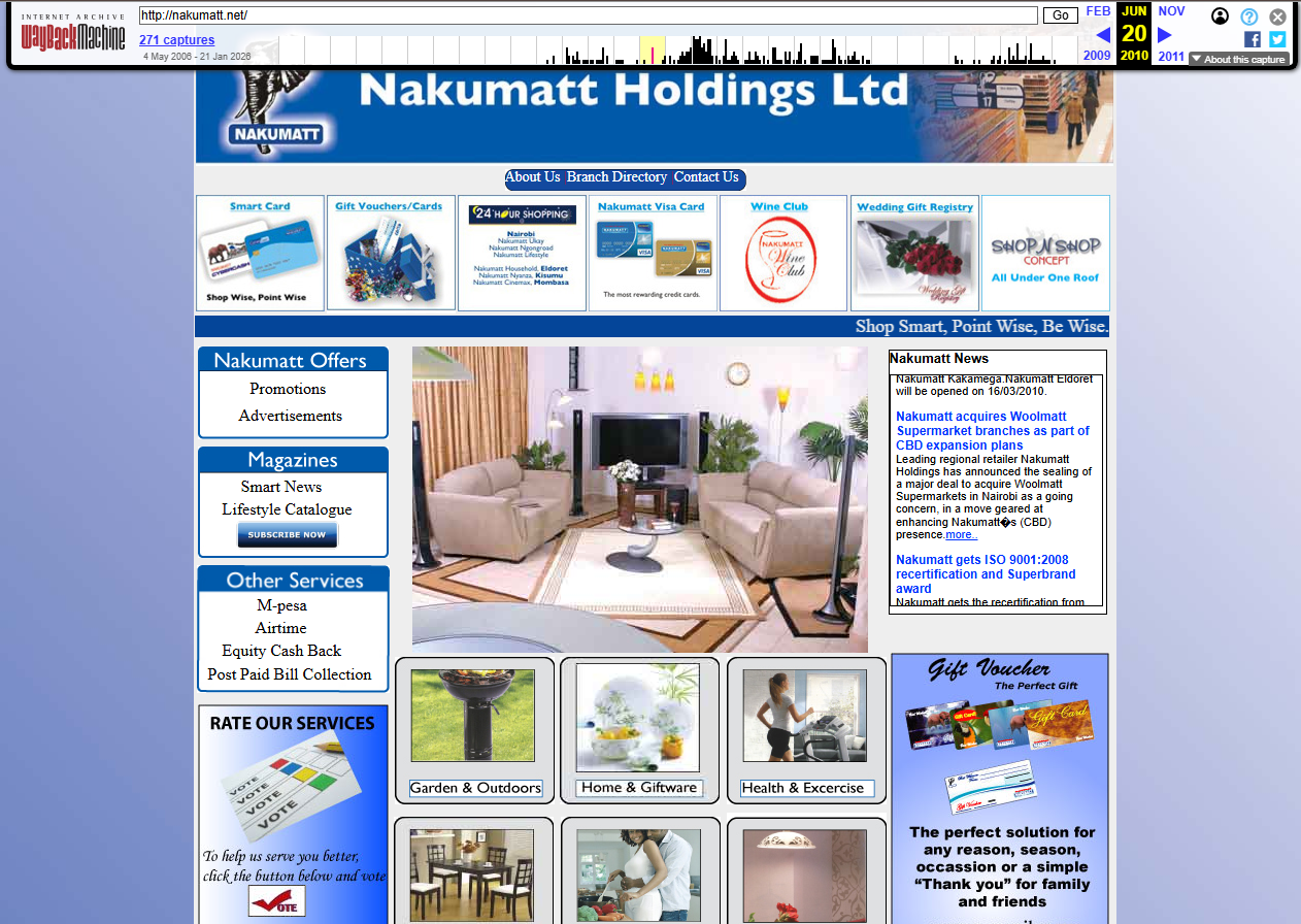 Screengrab from Nakumatt’s website, now defunct as of 2026, showing what Nakumatt’s homepage featured in 2010